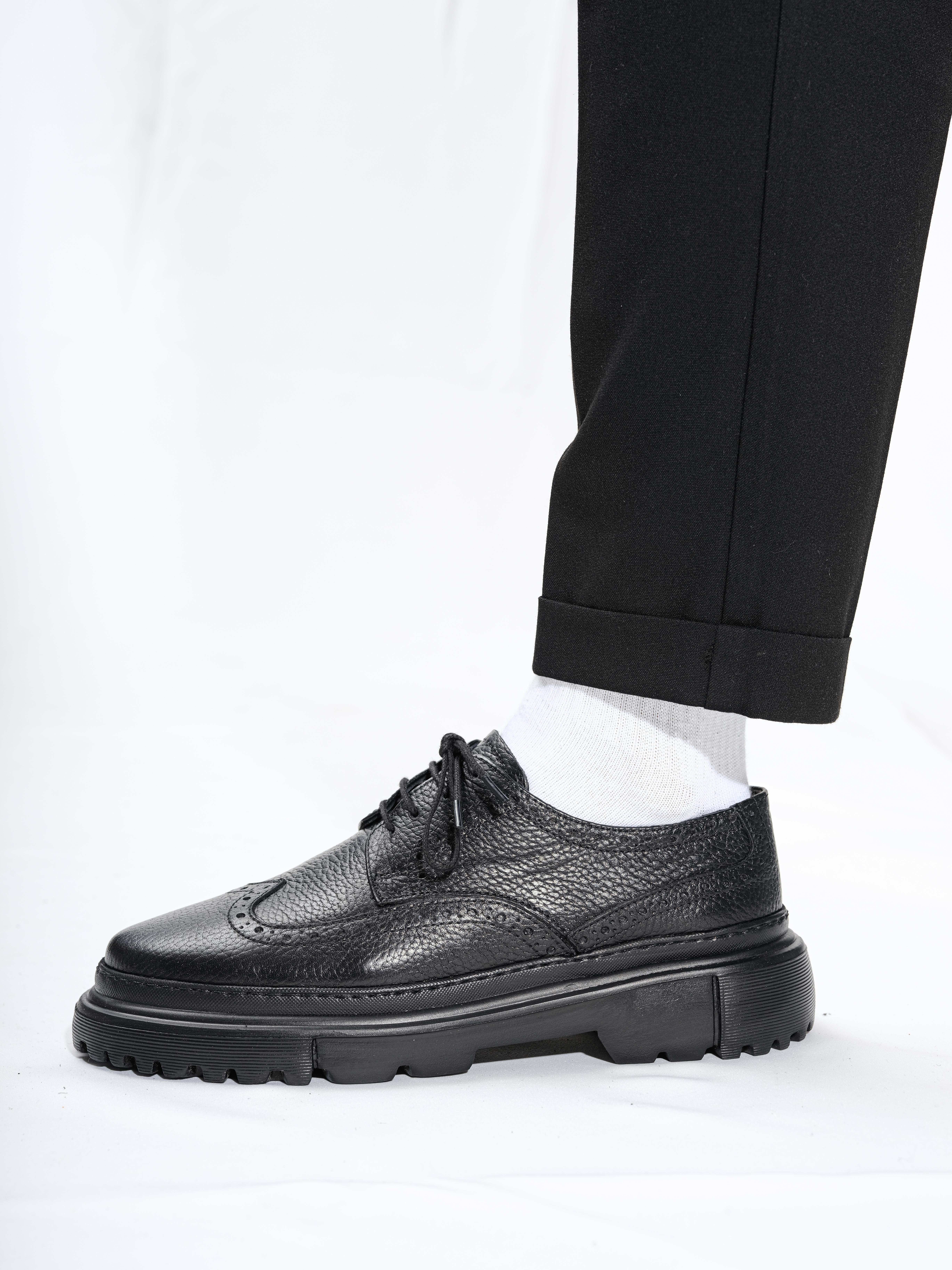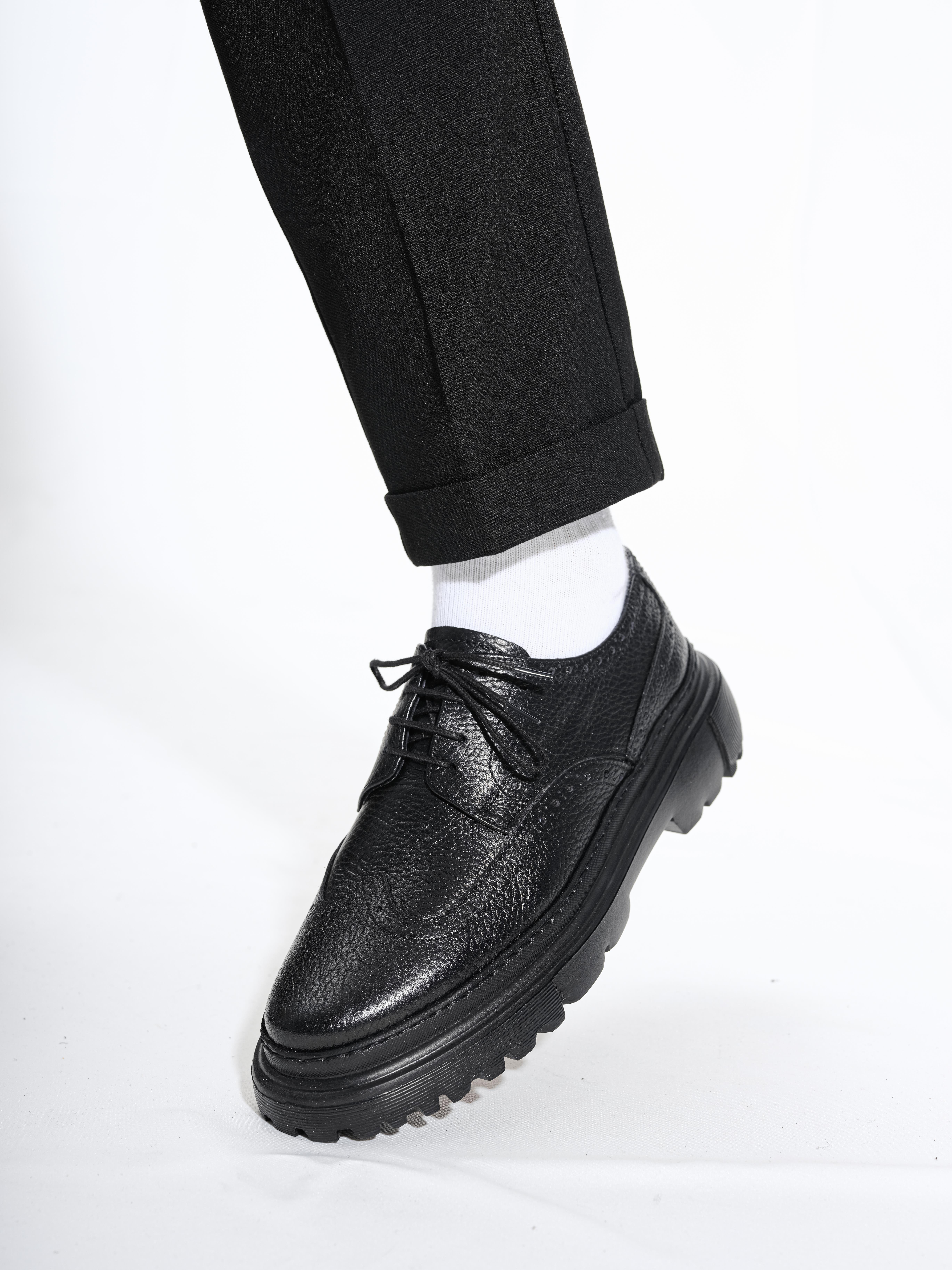 Elegantte Hakiki Deri El Yapımı Siyah Casual Ayakkabı