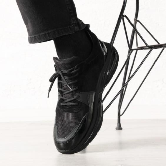 Eleganze Hakiki Deri El Yapımı Siyah Sneaker Ayakkabı
