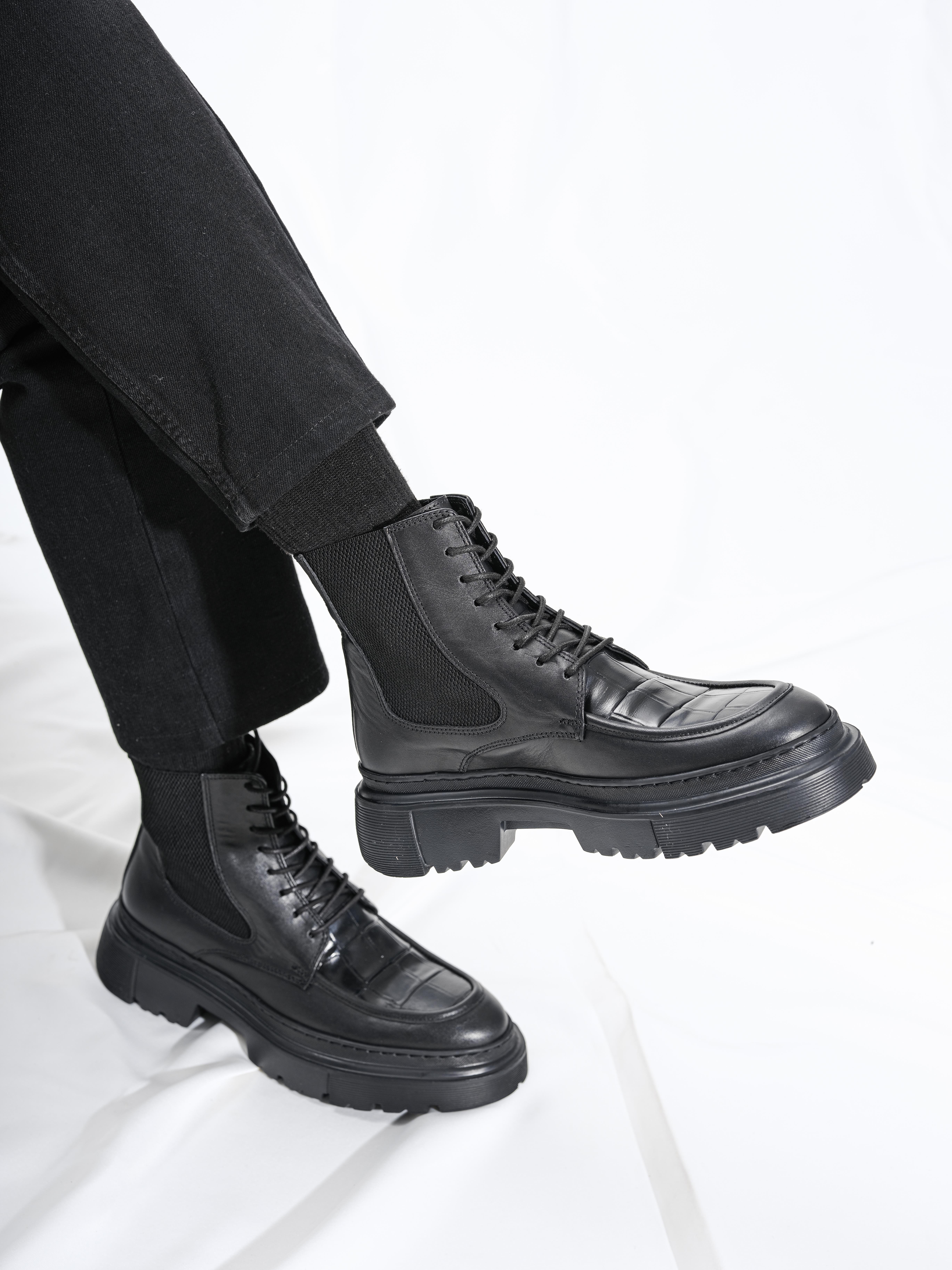 Monias Hakiki Deri El Yapımı Erkek Siyah Bot