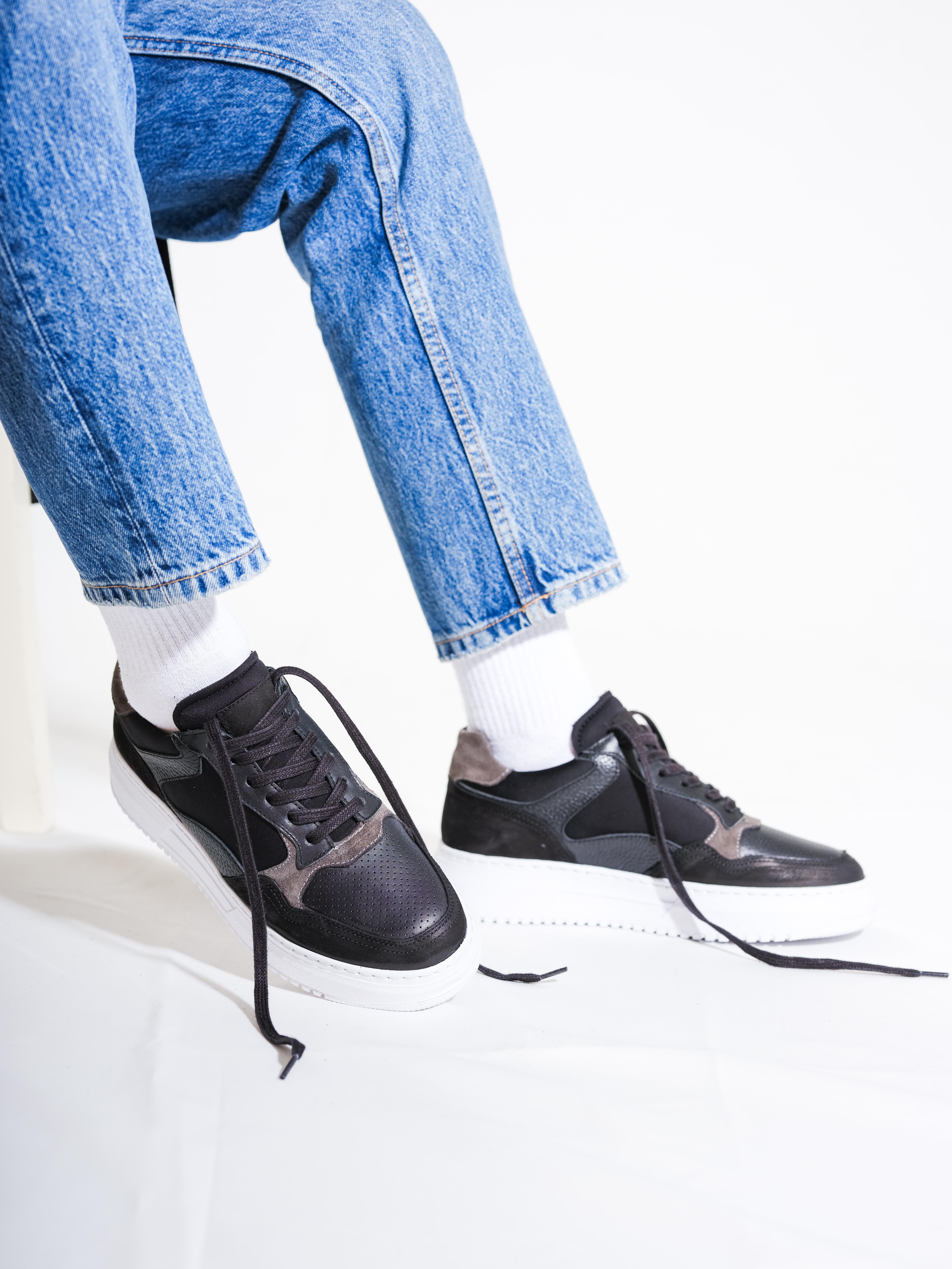 Moreno Siyah Erkek Hakiki Deri El Yapımı Spor Ayakkabı