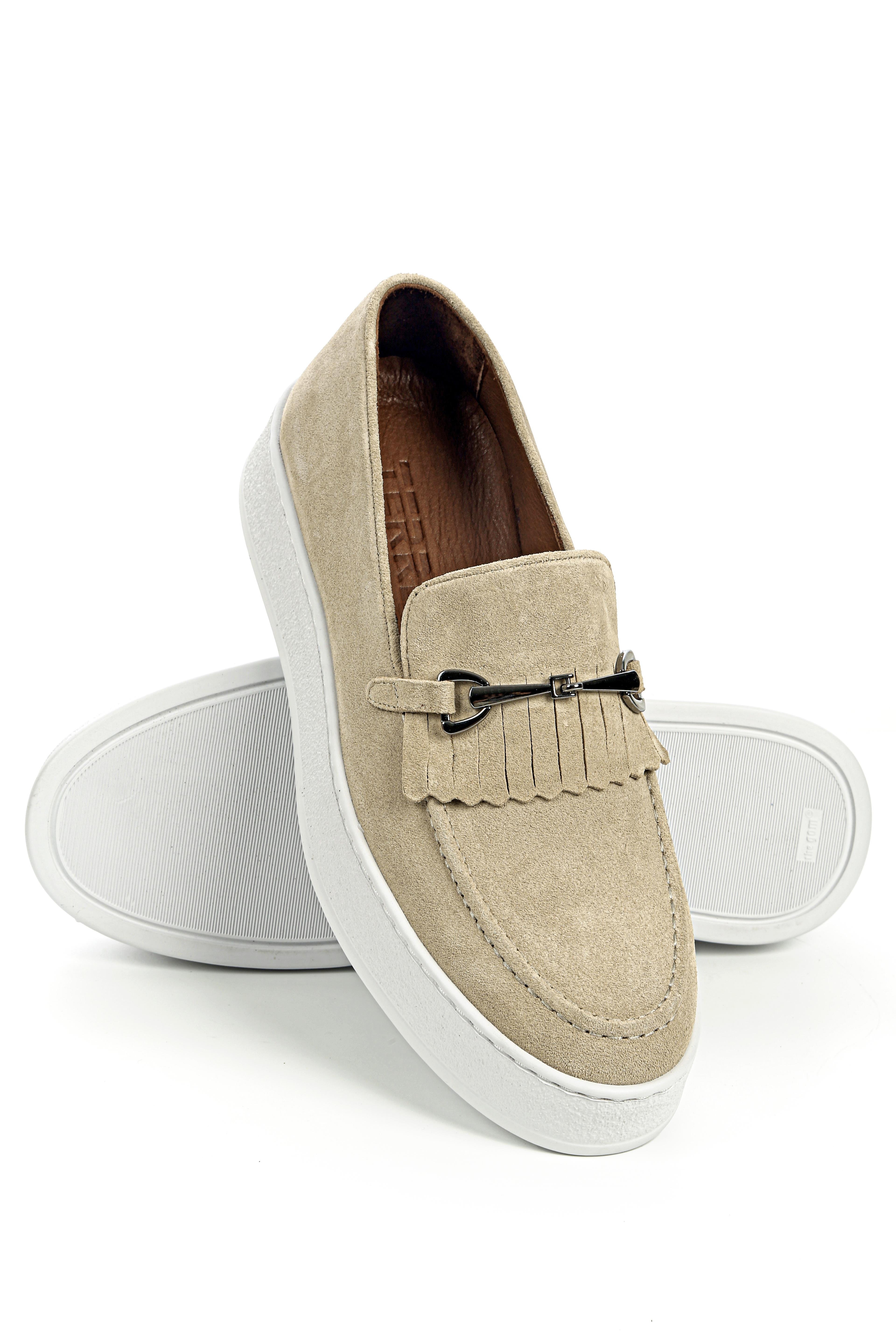 Nox Hakiki Deri El Yapımı Erkek Bej Loafer Ayakkabı