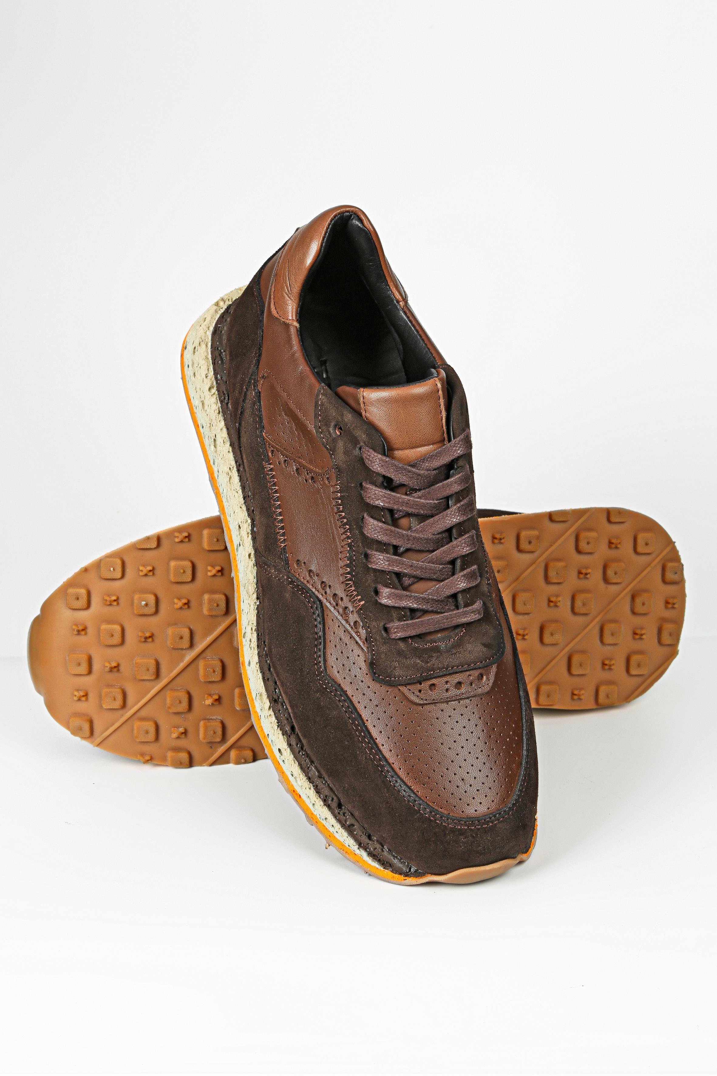 Savage %100 Hakiki Naturel Dana Derisi Kahverengi Erkek Sneaker Ayakkabı