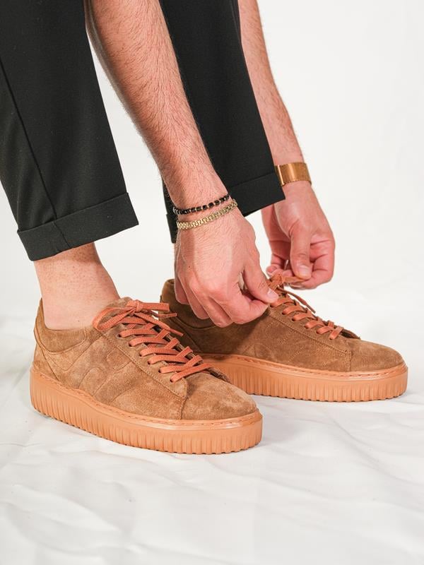 Tiggo Hakiki Deri El Yapımı Kahverengi Erkek Sneakers Ayakkabı